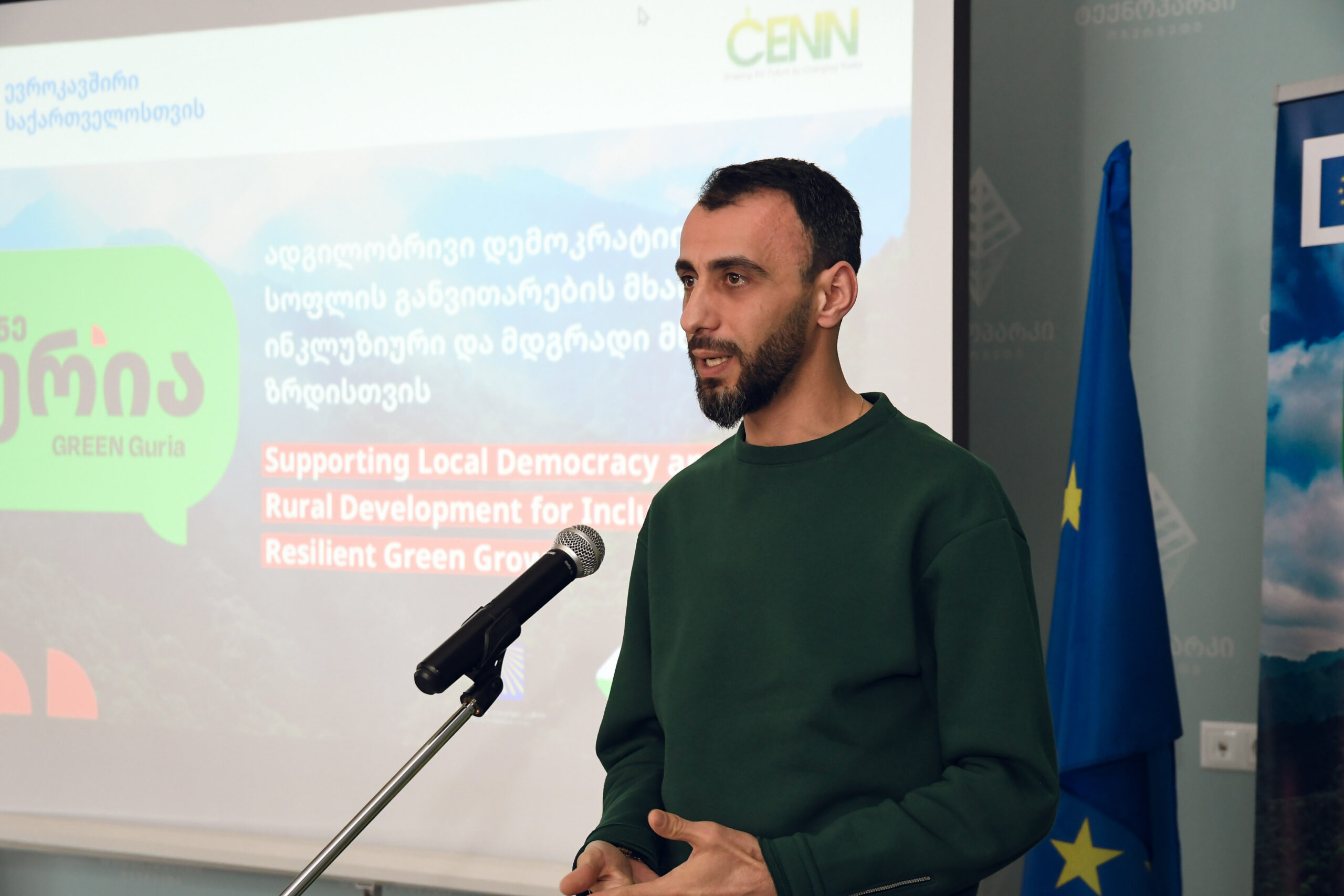 On March 22, 2023, the launch event for the new EU-funded “Green Guria – Supporting Local Democracy and Rural Development for Inclusive and Resilient Green Growth” project was held in Ozurgeti Techno Park, Guria, organised by CENN with partner organisations. The project aims to reduce poverty and improve the economic and social environment and living conditions of vulnerable rural communities in the Guria region.