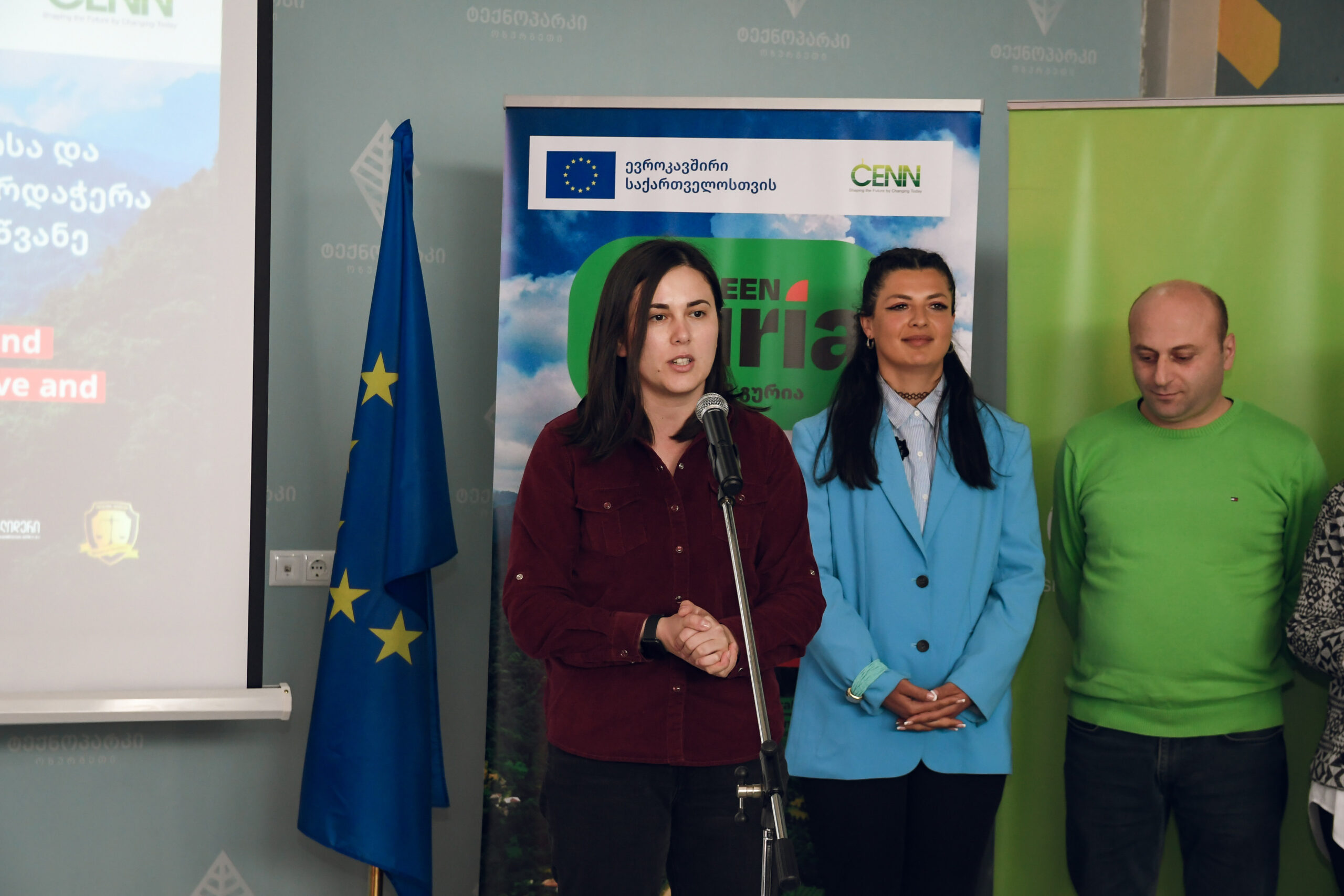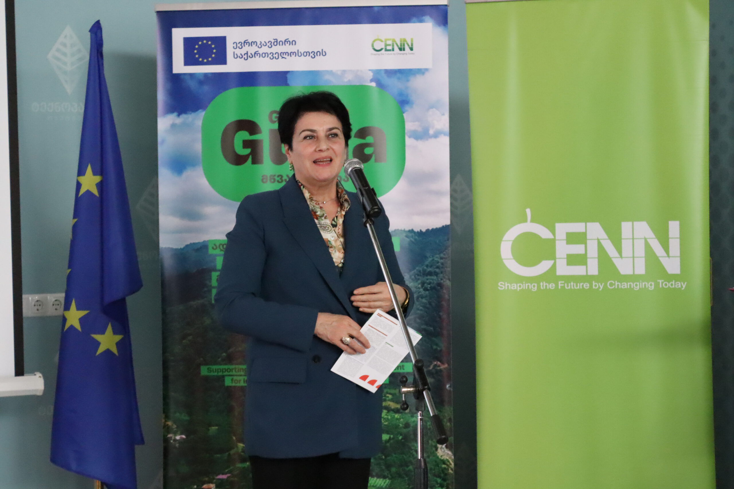 Nana Janashia, Executive Director, CENN; Ketevan Khutsishvili, Programme Manager for Rural Development, Civil Protection and Crisis Management of the Delegation of the European Union to Georgia; Ekaterine Zviadadze, Head of the Policy Coordination and Analysis Department, MEPA; Giorgi Urushadze, State Representative, Guria; Giorgi Ghurjumelidze, Vice Mayor of Ozurgeti Municipality; Maia Kutubidze – Vice Mayor of Chokhatauri Municipality; Eka Gujabidze, Vice Mayor of Lanchkhuti Municipality, gave a welcome speech and opened the event.
