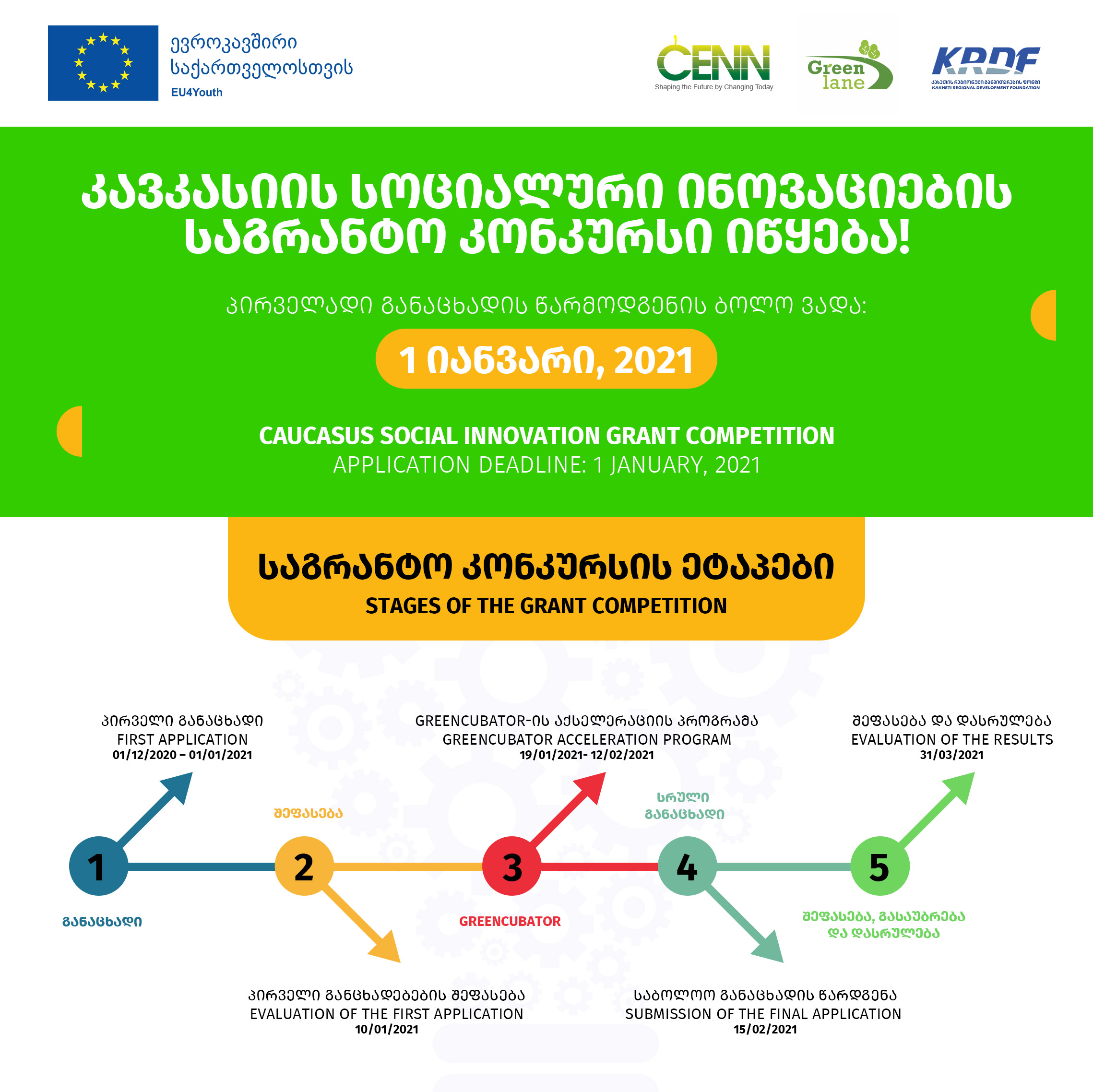 Within the scope of the EU4Youth programme, CENN with the support of the EU announces a social innovation grant competition in 3 municipalities of Georgia!