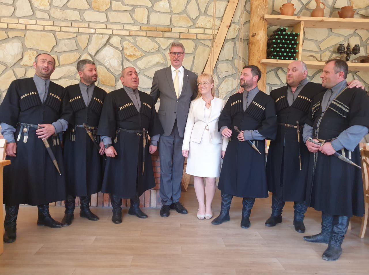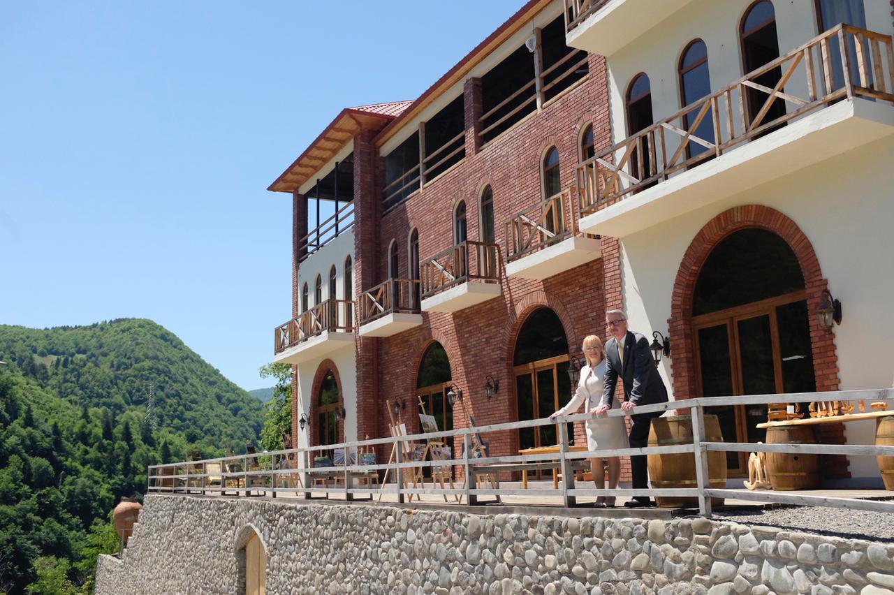 The ambassador also visited Shervashidzeebi’s Winery – Wine Tasting The Shervashidze family winery, located in the village of Pirveli Maisi in the highlands of Ajara, offers guests wooden cottages with bathrooms and balconies, styled after iconic stilted structures from traditional local architecture known as Nalia. Visitors can enjoy the views of the local landscape and take this unique opportunity to taste wine and try out traditional Georgian dishes. The family hotel offers its guests 1 or 2-day tours, which include visits to historical monuments from the 10th-12th century. The hotel also offers unique adventure sports such as zip lining. The project provided 4 Nalia style cottages. Alexandre Shervashidze, an experienced entrepreneur, has a profound knowledge of local culture and history and often guides the tours himself. His winery opened in 2006 and, owing to the property’s exceptional nature and quiet environment, the winery enjoys great popularity in Keda municipality.
