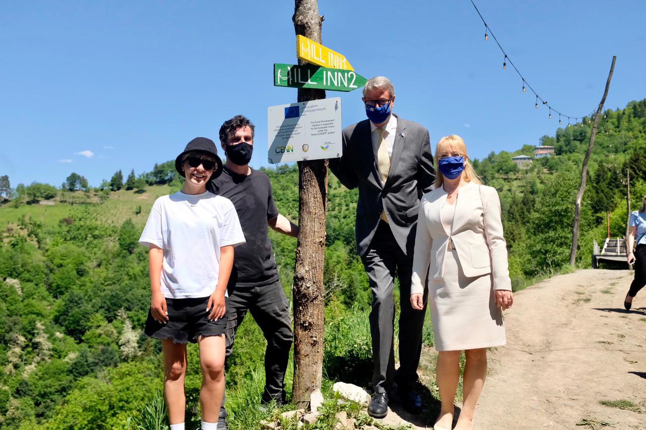 The ambassador also visited Luxury Camping Hill Inn – The Hill Inn project has laid a solid foundation for innovative approaches to the development of rural tourism in the region. With the Luxury Camping Hotel, guests are offered a variety of services, including a cinema screen for projecting films, a small library, a Jacuzzi spa, and a sauna. Due to its advantageous location, the luxury camping site is open year round. Within the project, two isolated glamping structures with unique landscape views were built on elevated platforms on land with an area of 5000 m2 that is owned by David Ardzenadze.