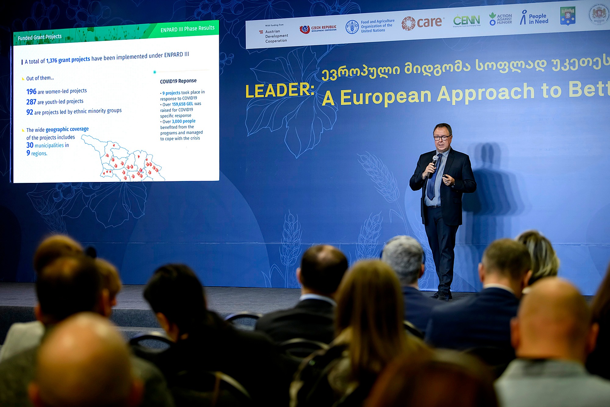 The conference was organised with support from the European Union (EU) by rural development partners united around ENPARD: the United Nations Development Programme (UNDP), the United Nations Food and Agriculture Organization (FAO), Action Against Hunger (AAH), CARE Caucasus, CENN, and People in Need.
