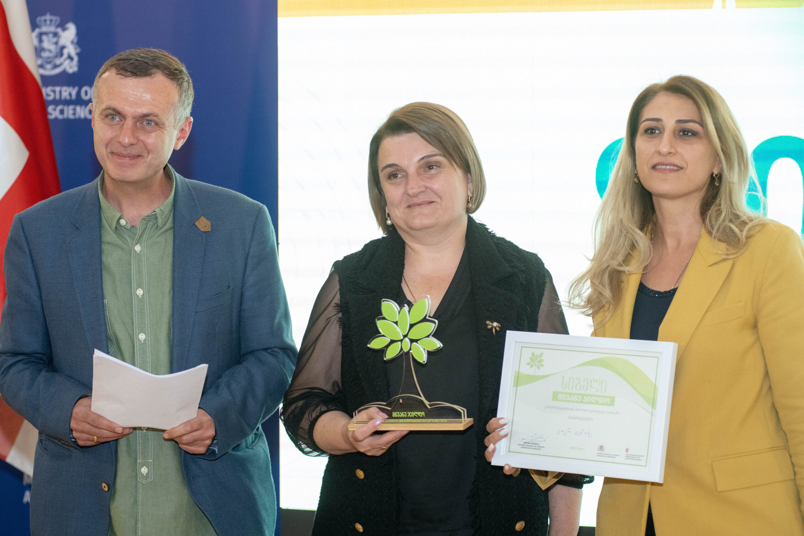 გარემოსდაცვითი ინფორმაციისა და განათლების ცენტრმა გამოვალინა „მწვანე ჯილდოს“ მფლობელი მასწავლებელი – ეთერ გეწაძე, აფენის #1 საჯარო სკოლიდან. ასევე, ცენტრმა სპეციალურ ნომინაციაში – „წლის ეკო-სპიკერი“ დაასახელა – ალექსანდრე ბენიძე, ლეციცხვაიეს საჯარო სკოლიდან და მას წიგნების 200 ლარიანი ვაუჩერი გადასცა.