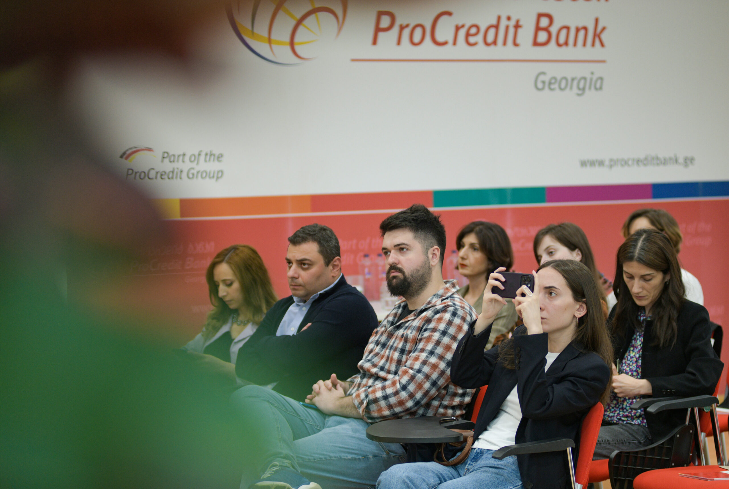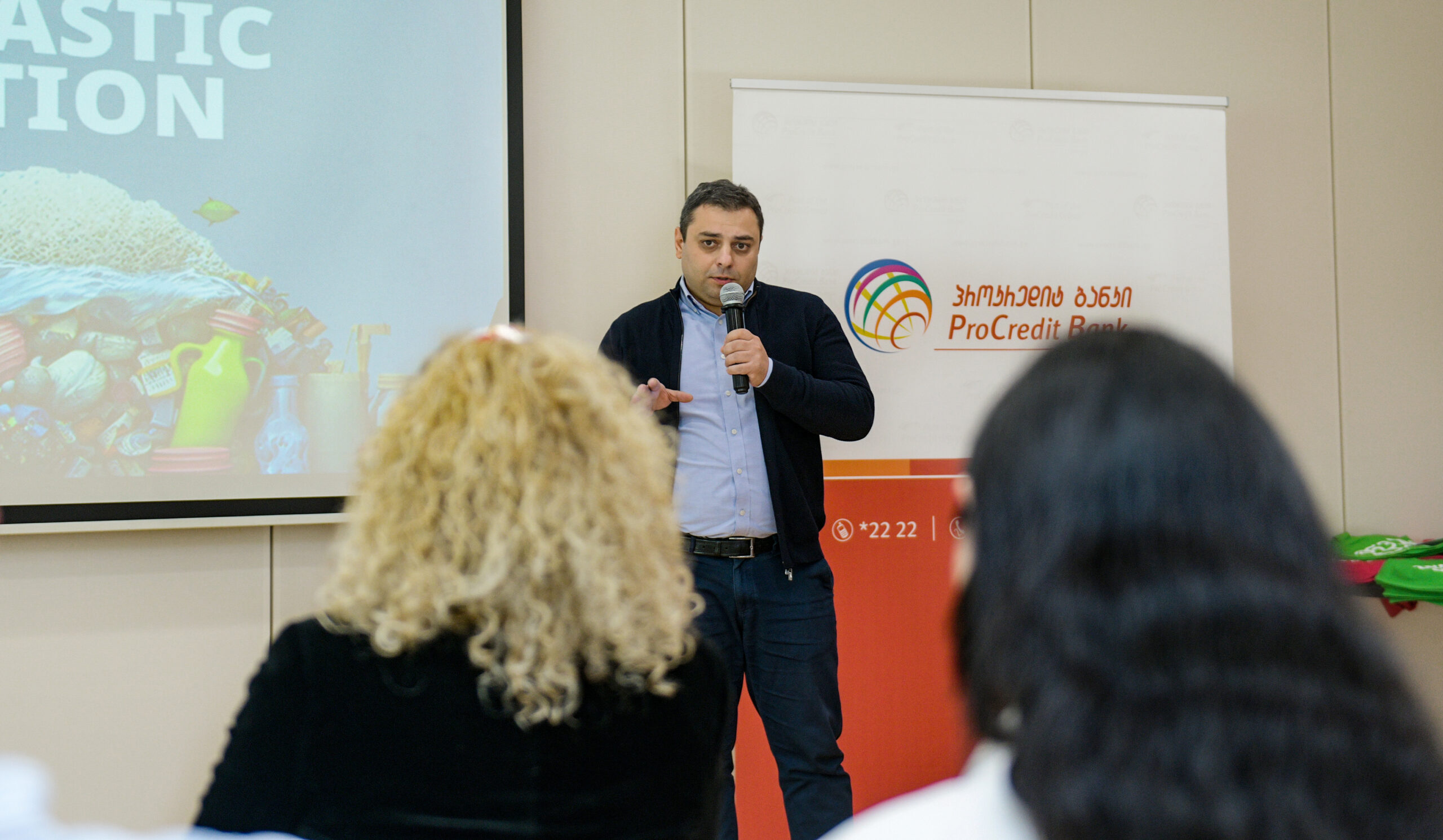 შეხვედრის მსვლელობისას, პროკრედიტ ბანკის გარემოსდაცვითი მენეჯმენტის განყოფილების ხელმძღვანელმა დამსწრეებს მდგრად პრაქტიკებზე გადასვლისა და გარემოსდაცვითი სერტიფიცირების საკითხებზე ბანკში არსებული გამოცდილების შესახებ გაუზიარა ინფორმაცია.