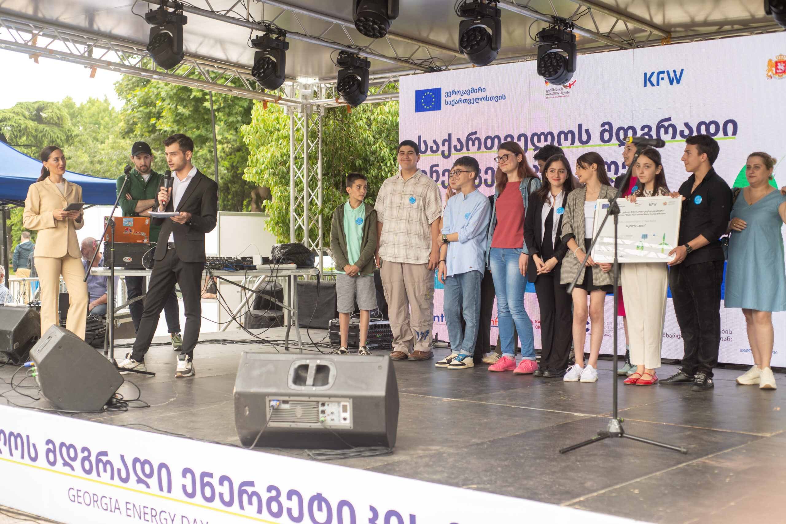 After the welcome speeches, an award ceremony for the “Make Your School More Energy Efficient” competition took place at Dedaena Park. 3 winning schools from Tbilisi were awarded by the GESRP project with certificates and cash vouchers to purchase energy-efficient technologies for their school building.